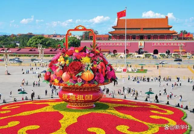 天安门广场“祝福祖国”巨型花篮(2024 年 9 月 25 日摄) 陈钟昊摄 / 本刊