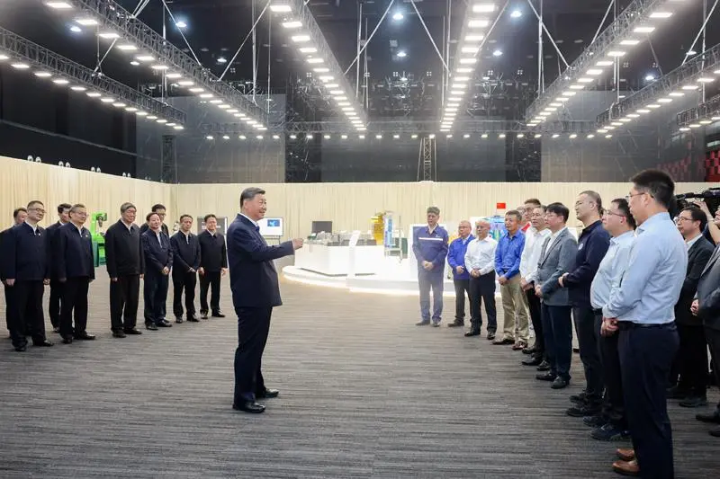 2024年10月17日,习近平总书记在安徽合肥滨湖科学城考察时,同现场科研人员和企业负责人亲切交流。