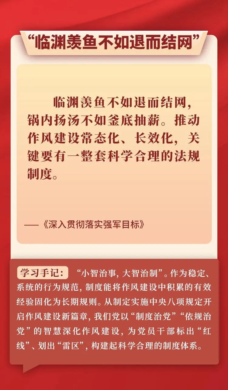“问渠那得清如许?为有源头活水来。”关于作风建设,习近平总书记常引用各种古语典故,有的从警示层面讲危害,有的从倡导层面谈践行,旁征博引、画龙点睛,把古人智慧化用于作风建设的当代实践,给人以思想启迪、灵魂洗礼。