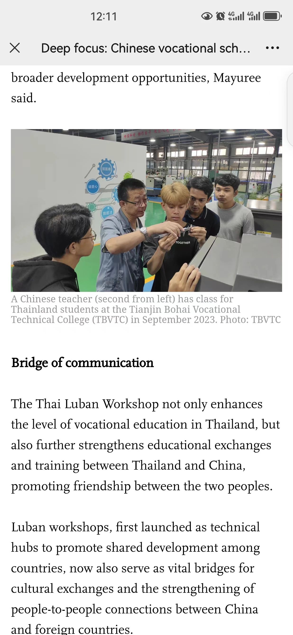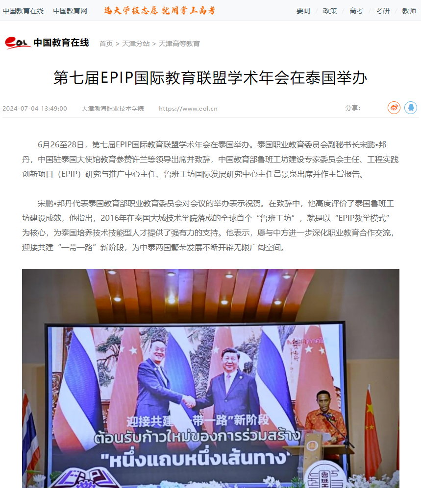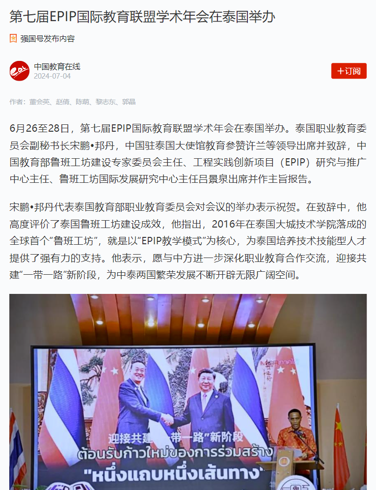 环球时报报道学院在泰国建设全球首家鲁班工坊。